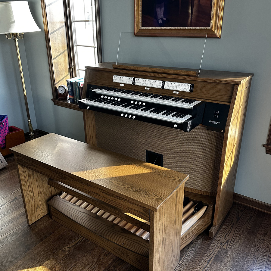 St. Bernard’s new GX-215 features Allen’s new APEX tone generation technology, Allen premium keyboards with velocity keying, GENISYS™ Display, GENISYS Remote app for remote operation, multiple organ suites, 34 Stops + 6 GENISYS™ Voices yielding 40 total Stops, external MIDI port, Expanded Audio Capabilities (EAC), and console dolly.